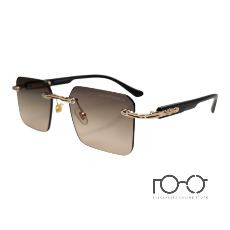 عینک آفتابی بدون فریم کروم هارت Chrome Hearts کائوچو فلز کد D24787S رنگ طلایی با لنز قهوه‌ای
