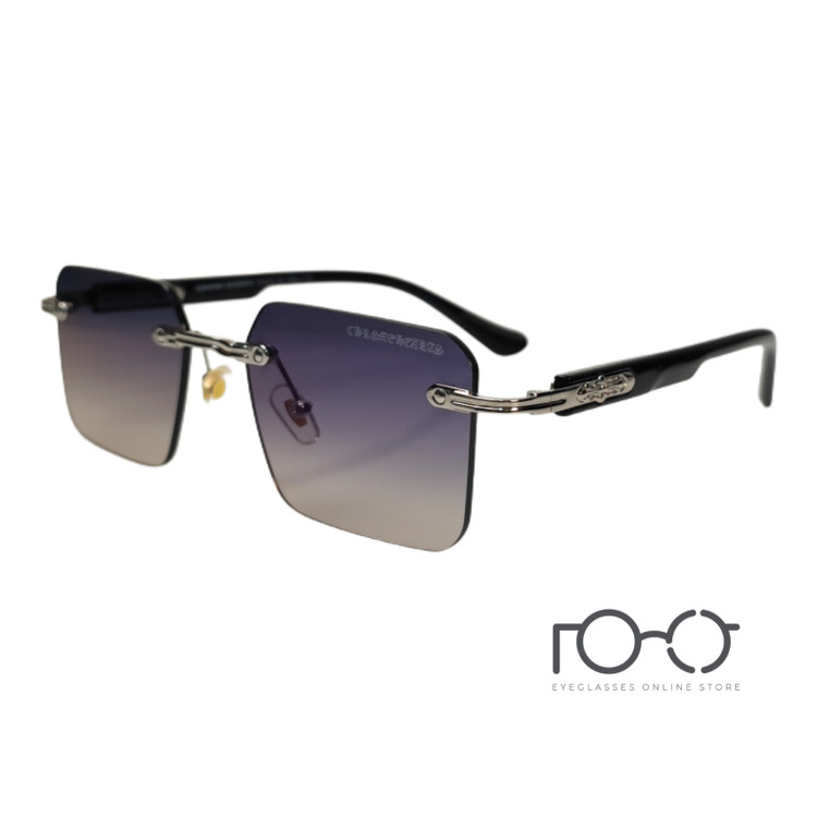 عینک آفتابی بدون فریم کروم هارت Chrome Hearts کائوچو فلز کد D24787S رنگ نقره‌ای با لنز سبز