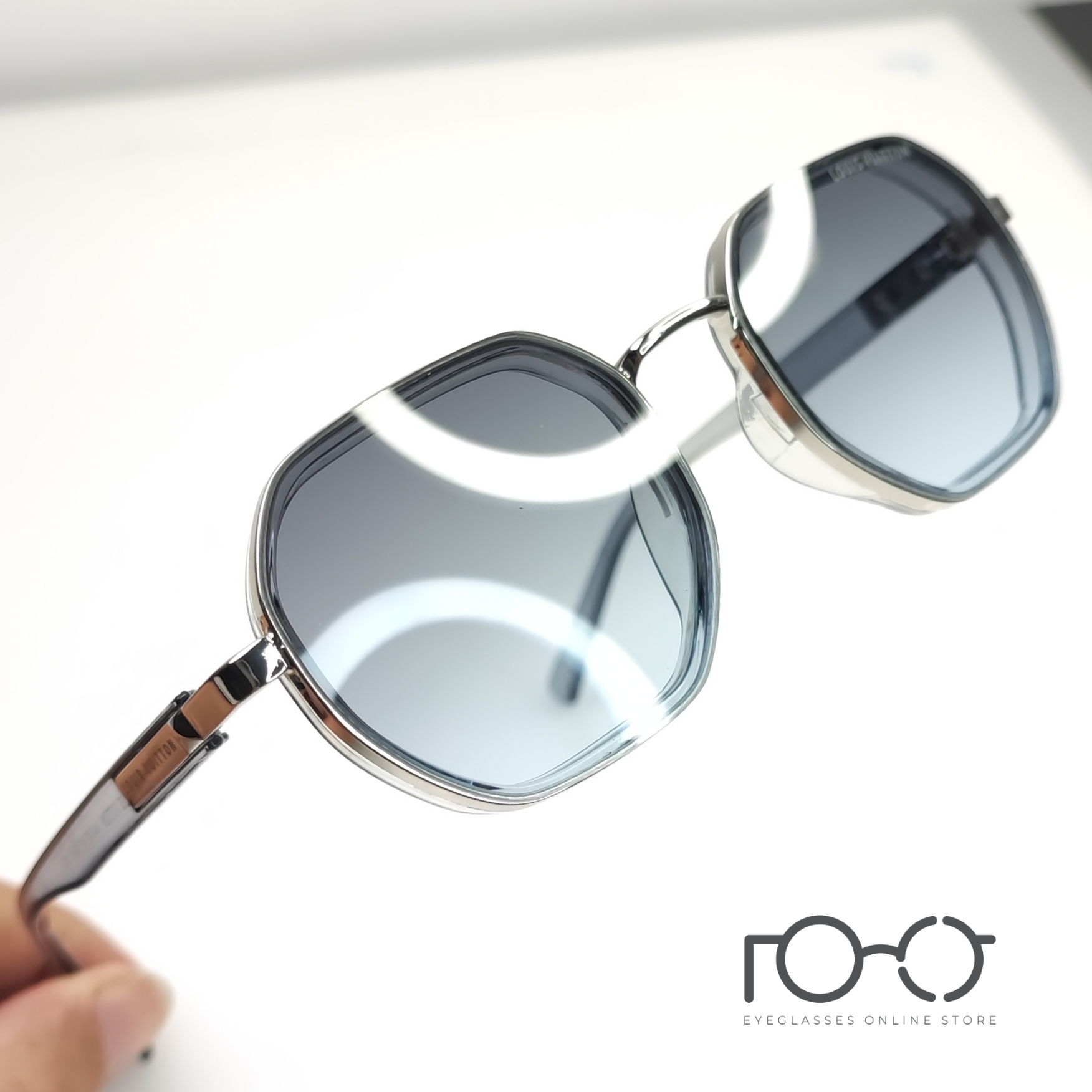 عینک آفتابی لویی ویتون LOUIS VUITTON کائوچو فلز کد C-484 رنگ نقره‌ای با لنز آبی